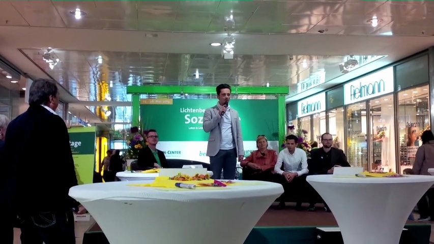 Die Bundestagskandidaten für den Wahlkreis Berlin-Lichtenberg stellen sich im Linden-Center bzgl. des Sozialtages vor.