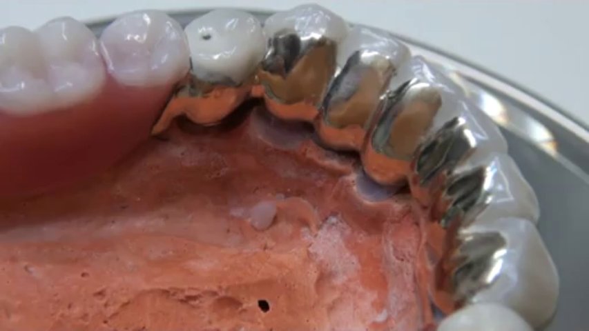 http://www.zahnarztpraxis-freudenstadt.de/besondere-angebote/gaumenfreie-teleskopprothesen/ - Teleskopprothesen sind Doppelkronenkonstruktionen. Das heißt, dass zahnförmige Außenkronen, die fester Bestandteil der eigentlichen Prothese mit rosa Zahnfleisch und Kunststoffzähnen ist, auf eher zapfen- oder hülsenartige Innenkronen geschoben werden. <br /><br />In unserem Video sehen Sie zu Anfang eine Wachsmodellation von insgesamt sieben Innenkronen, die absolut parallel zueinander gefräst wurden. Diese Parallelität sorgt dafür, dass die fertige Prothese fest auf diesen Innenkronen sitzt und nicht abfällt. <br /><br />Die Parallelität in Nahaufnahme: perfekt randschlüssig gestaltete Wachsmodellation der späteren gegossenen Innenkronen, absolut parallel zueinander modelliert. Frisch aus der Gussschleuder: alle sieben Innenkronen auf dem Gusskegel. <br /><br />Nähere Informationen finden Sie auf unserer Internetseite: <br />http://www.zahnarztpraxis-freudenstadt.de/besondere-angebote/gaumenfreie-teleskopprothesen/