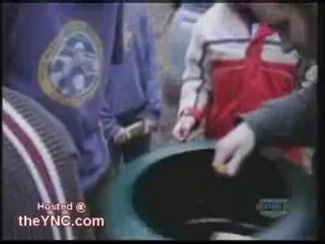 Mehrere Leute wollen in einen mit Benzin gefüllten Behälter anzünden erst passiert nichts doch dann gibt es eine riesige Stichflamme, aua.