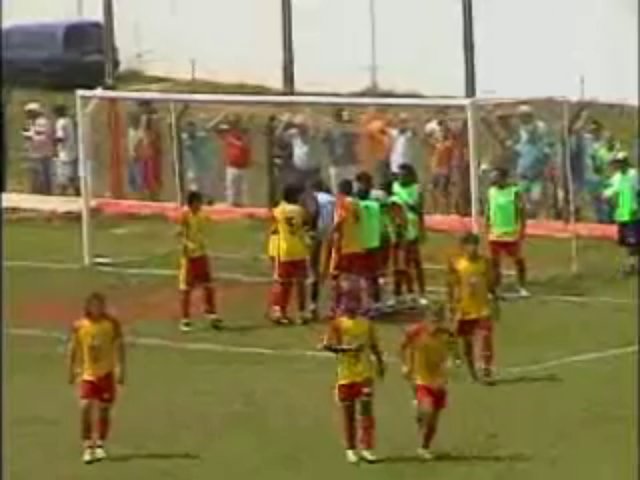 Ein Balljunge nimmt nach einem Tor der Gegner den Ball und schießt ihn in das Tor und plötzlich sagt der Schiedsrichter das dass Tor zählt.