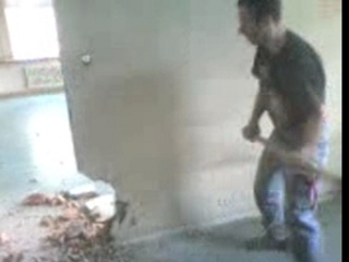 Idiot versucht Wand einzutreten
