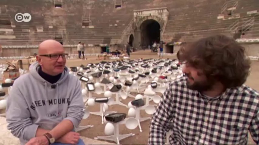 Der deutsche Künstler Luzius Ziermann setzt gerne Zeichen. Meist irgendwo auf großen Flächen mitten in der Natur, dort wo sich eigentlich kaum ein Publikum hin verirren kann. Die ganze Pracht seiner Installationen erkennt man aber ohnehin nur aus der Vogelperspektive. Es sind Autospiegel, die ihre Lichtreflexe in den Himmel schicken. <br /><br />Mehr Euromaxx unter: http://www.dw.de/euromaxx