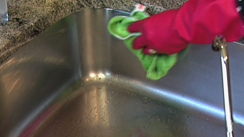 How to clean a stainless steel sink. Benutzen Sie ganz einfache Hausmittel um Ihr Edelstahl-Spülbecken zum Strahlen zu bringen. Julie Edelman, The Accidental Housewife, zeigt, wie man es macht. (Getting your sink to shine is easy, using a few household items you might not think could do the job. Julie Edelman, The Accidental Housewife, shows how it's done).