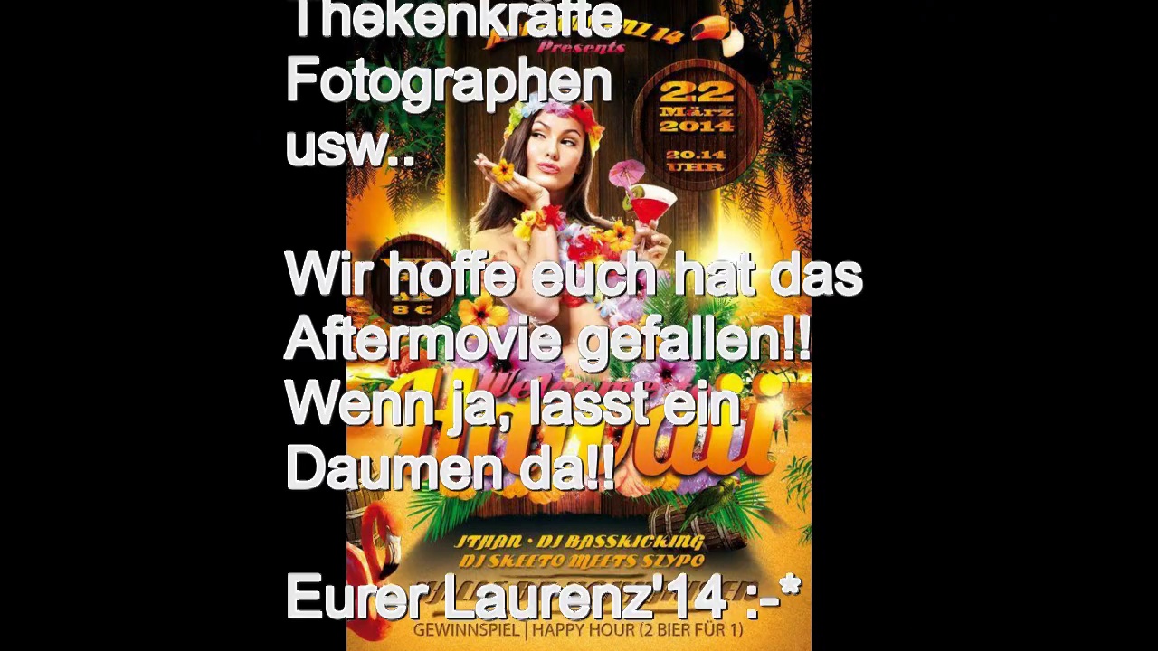 Vielen vielen dank an alle die da waren. <br />An alle Helfer > Techniker > DJ's > (Jthan - Szypo - BassKicking & Skeeto) > Ordnungskräfte > Thekenkräfte > Fotographen usw.. <br /> <br />Wir hoffen EUCH hat das Aftermovie gefallen!! <br />Wenn ja, lasst ein Daumen da!! <br /> <br />Eurer Laurenz'14 :-* <br /> <br />Bis demnächst!! <br /> <br />» Video & Music by DJ SKEETO! <br /> <br /> <br />FOLGT DEN DJ's FÜR NÄCHSTE EVENT INFORMATIONEN!!!! <br />» JTHAN DEEJAY: http://iobic.de/c3l <br />» DJ BASSKICKING: http://iobic.de/c3k <br />» DJ SKEETO: http://iobic.de/c3j <br /> <br />FOLGT DEN STUFEN FÜR NÄCHSTE EVENT INFORMATIONEN!!!! <br />» LAURENZ '14: http://iobic.de/c7a <br />» LAURENZ '15: http://iobic.de/c3m