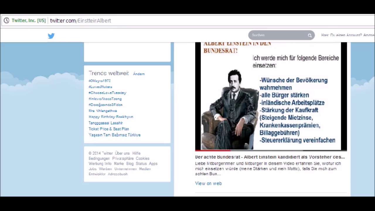 Achter Bundesrat der Schweiz Albert Einstein kann auf Twitter direkt <br />kontaktiert werden.