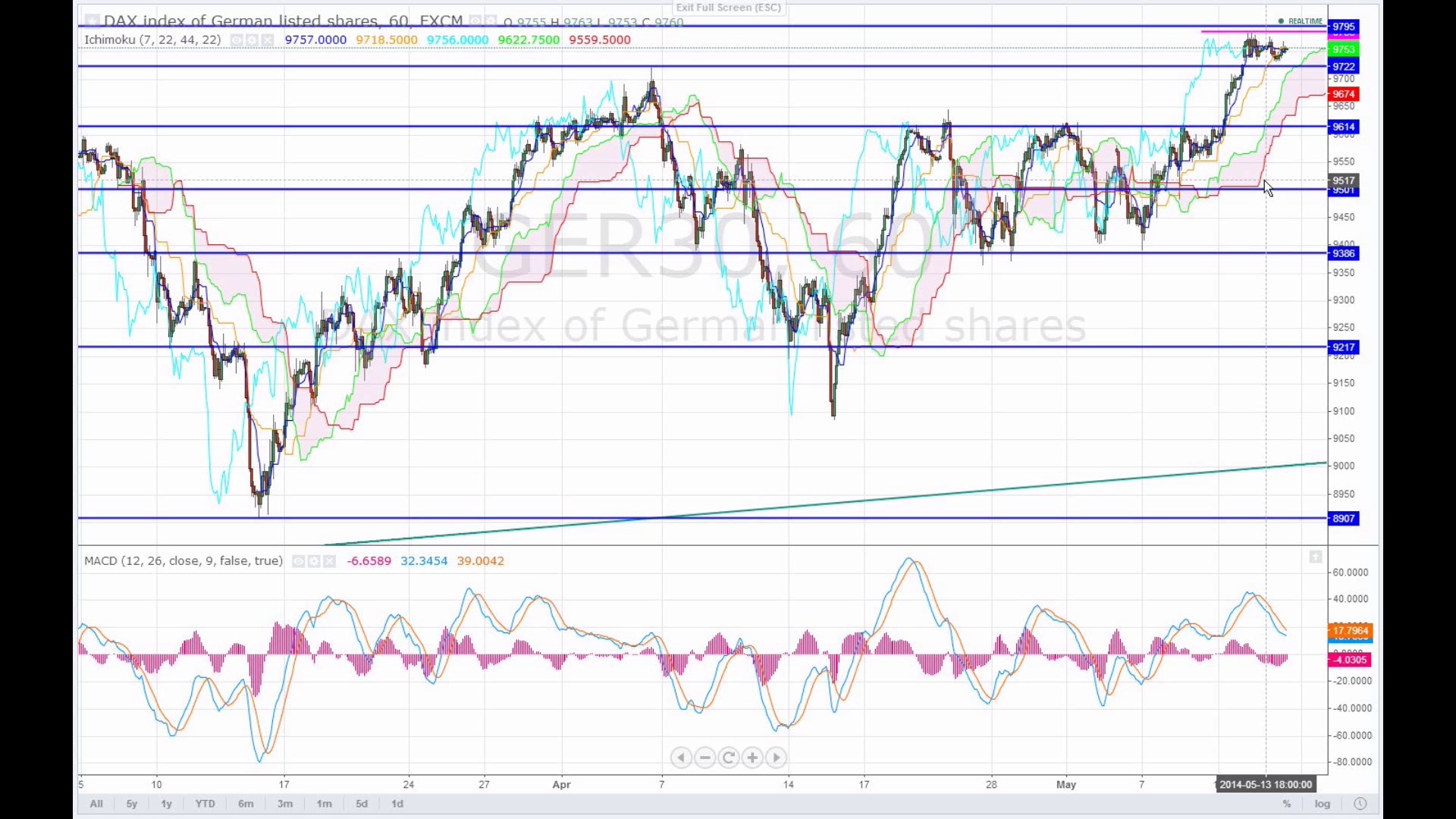 Während die US-Märkte im Einklang mit USD/JPY Schwäche zeigten, ließ sich der Dax nicht beeindrucken und verharrte auf hohem Niveau. Wie lange noch? Oder haben die US-Märkte morgen auch wieder Rekordhunger. Der Chart mahnt jedenfalls zur Vorsicht. <br />Schwache Arbeitsmarktdaten haben GBP heute unter Druck gesetzt. EUR/USD legte bei der Talfahrt eine Pause ein.