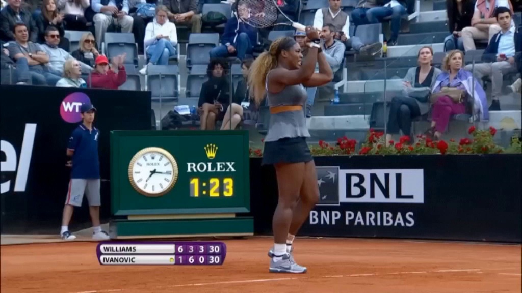 Serena Williams steht im Finale des WTA Turniers in Rom. Nur im zweiten Satz ließ die Amerikanerin Ana Ivanovic kurz ins Spiel. Ihr dritter Erfolg in Italien ist zum Greifen nah.