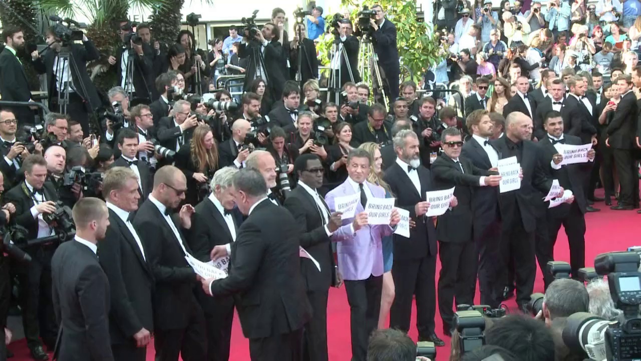 Die von Islamisten in Nigeria verschleppten Schulmädchen bekommen schlagkräftige Unterstützung aus Hollywood: Bei den Filmfestspielen in Cannes haben die Stars des Action-Krachers "The Expendables 3" um Sylvester Stallone, Wesley Snipes und Jason Statham ihren Auftritt auf dem Roten Teppich genutzt, um sich der internationalen Kampagne zur Freilassung der Mädchen anzuschließen.
