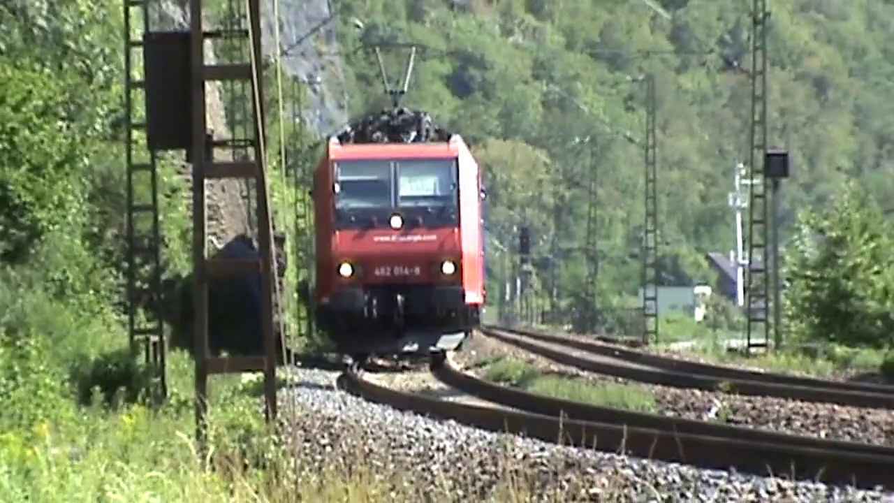 Gefilmt am 02.08.11 gegenüber dem Bett-Tunnel und dem Kammereck Tunnel, welcher sich auf der linken Rheinseite befindet. <br /> <br />Die BR101 mit dem IC hat vor wenigen Minuten Oberwesel auf der linken Rheinstrecke durchquert. Danach hat sie zuerst den Kammereck Tunnel und danach den Bett-Tunnel in nördliche Richtung durchfahren und wird gleich in St. Goar eintreffen. <br /> <br />Das Nordportal des Kammereck Tunnels ist hier durch die Vegetation verdeckt, aber das Dach des kirchturmähnlichen Portaltürmchens ist manchmal über den Bäumen sichtbar. <br />Dort verschwindet auch die erste 460 im Kammereck Tunnel Richtung Süden / Oberwesel. <br /> <br />Ich stehe hier an der rechten Rheinstrecke zwischen dem Loreley Tunnel (rechts von mir hinter der Kurve) und dem Roßstein Tunnel (links von mir noch hinter der Flußbiegung). <br />Genau gegenüber auf der linken Rheinseite befindet sich das Ampelgerüst (hier durch die Vegetation verdeckt) mit den Verkehrsampeln für die Rheinschifffahrt, welche den Schiffsverkehr an dieser immer noch gefährlichen Stelle des Rheins regeln. <br /> <br />Restliche Suchworte: <br />multimodal, intermodal, Intermodalzug, Intermodalverkehr, kombinierter Güterverkehr, LKW-Auflieger, Railion, Güterwagen, Güterverkehr, Personenwagen, Flachwagen, Siemens, Personenwaggons, EMU Electrical Multiple Unit, Regio, Regionalzug, Regionalverkehr, Nahverkehr, Nahverkehrszug, Personennahverkehr, Personennahverkehrszug, Containerwagen, Containerwaggon, European, VTG Vereinigte Tanklager und Transportmittel GmbH, Schiebewandwagen, Kesselwagen, Verkehr, logistics, TRAXX , Achskonfiguration Bo'Bo'-el, Bombardier, Spedition, Fernverkehr, Fernverkehrszug, Personenfernverkehr, Personenzug, Transwaggon, Eisenbahnverkehrsunternehmen EVU, Eisenbahn - Verkehrsgesellschaft, Railcar, Mehrsystemlok, LKW-Transportwagen, RBH (Rail, Barge and Harbor), (Eisenbahnverkehr, Schiffsverkehr und Hafenumschlag), Doppeltraktion, Doubleheader, Ganzzug, Mehrsystemlok, Tankwagen, Pendlerzug, Commuter, Wetron, barge, barges, Binnenschiff, Frachtschiff, Binnenschifffahrt, Reinschiffe, Rheinschifffahrt, VERANO, Schüttgutwagen, Schüttgutwagenzug, Gaskesselwagen, Schiebeplanenwagen, Niederbordwagen, Silberlinge, N-Wagen, Rungen, Rungenwagen, Autotransportwagen, <br /> <br /> <br />Baureihe,Trains,Loreley,Tunnel,Bett,Kammereck,Rhein,Rhine,deutsch,Deutschland,German,Germany,Lok,loco,Locomotive,Lokomotive,Elektrolok,E-Lok,Güterzug,DB,DBAG,Deutsche,Bahn,AG,River,Fluß,Schenker,Stadler,Flirt,Linie,SE10,VIAS,Triebwagen,Elektrotriebwagen,Eisenbahnverkehr,Europe,traffic,Siemens,185,BR185,Train,Triebzug,BR428,BR101,IC,InterCity,Rail,427,BR427,Bauart,RBH,Rail,Barge,Harbor,Hafenumschlag,SBB Cargo,Re482,SBB Schweizerische Bundesbahnen,Desiro,BR460,Mittelrheinbahn,ML,BR111,BR143