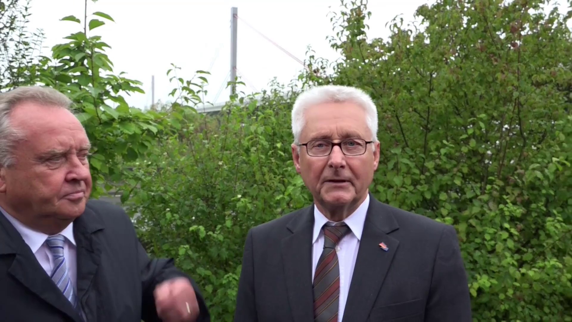 Oberbürgermeister Buchhhorn und der Bundestagsabgeordnete Nowak <br /> <br />Aufgenommen an der Rheinbrücke <br /> <br />http://www.leverkusen.com/presse/db/presse.php?view=00030151