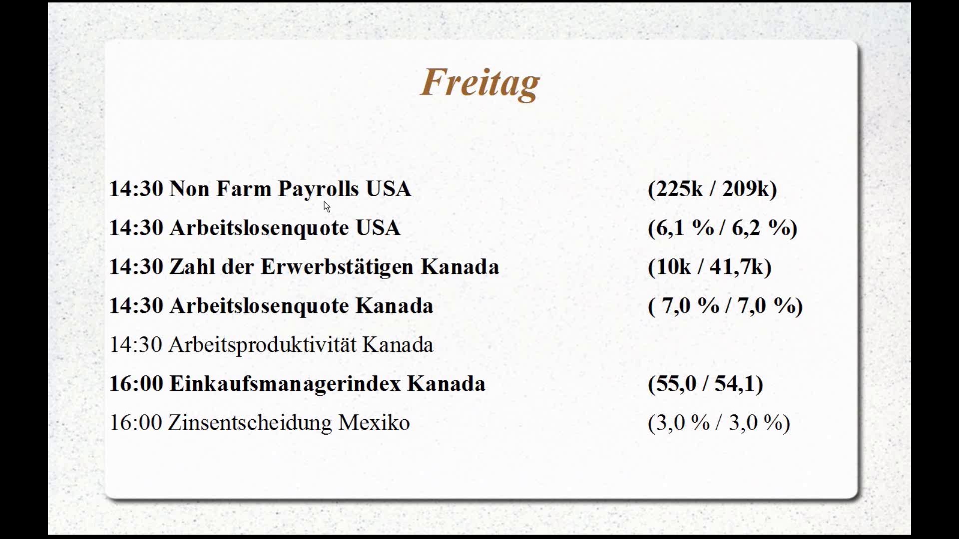 Das Highlight sind natürlich die Non Farm Payrolls. Aber es gibt weitere sehe interessante Termine. zum Beispiel scheinen bei der Fed die Ferien vorüber zu sein.