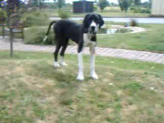 Dobermann hat Respekt vor der Deutschen Dogge