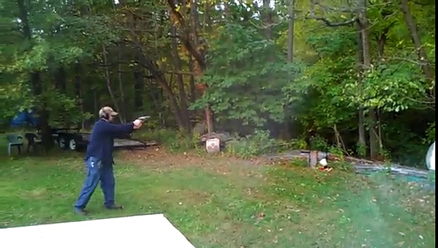 Un homme va tirer au pistolet, un revolver Smith & Wesson 500, sur un arbre où il a pris soin de placer une cible. Mais tout ne va pas se passer comme prévu et l'arbre va lui tomber dessus. Heureusement pour lui, il a encore de bonnes jambes pour courir !