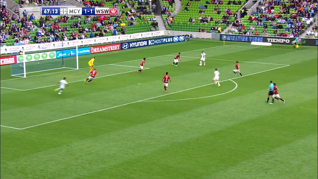 Solche Chancen bieten sich einem nicht oft. Trotzdem schaffte es Melbourne City Stürmer Iain Ramsay diese perfekt getimete Hereingabe nicht im Tor unterzukriegen.