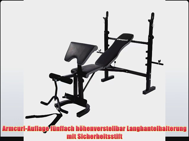 Ultrasport Hantelbank Weight Bench Plus Klicken Sie unten, um auf Amazon zu kaufen: http://www.amazon.de/gp/product/B00BN4SRES?tag=crantzflorist-21<br />Nahezu alle Muskelpartien trainierbar zB durch Bankdr?cken Beinstrecker Bizep-Curls <br />Armcurl-Auflage f?nffach h?henverstellbar Langhantelhalterung mit Sicherheitsstift <br />Schaumstoffgepolsterte R?ckenlehne vierfach h?henverstellbar <br />V-Griff f?r Armtraining elastischer Gurt f?r weitere ?bungen <br />Max Benutzergewicht 150 kg<br />Ultrasport Hantelbank Weight Bench Plus