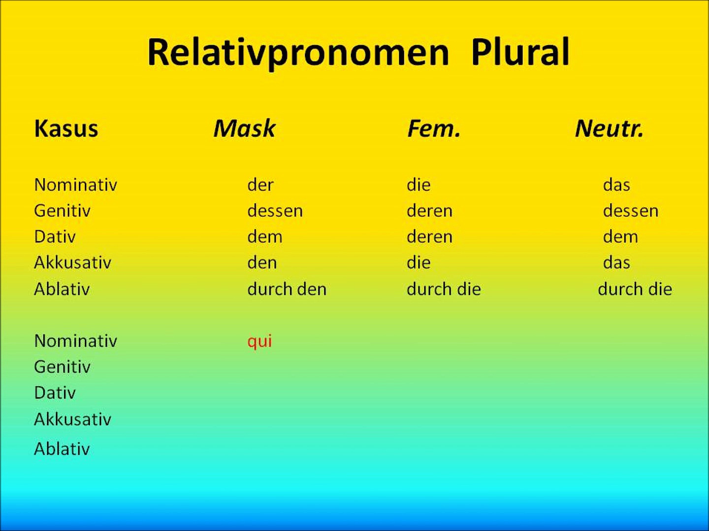 Relativpronomen Plural