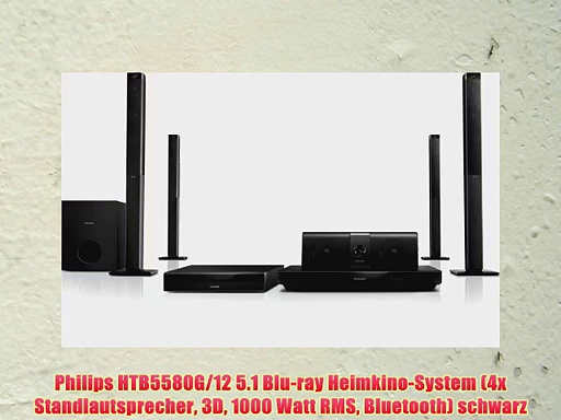 Philips HTB5580G/12 5.1 Blu-ray Heimkino-System (4x Standlautsprecher 3D 1000 Watt RMS Bluetooth)<br />Click below to buy on Amazon: http://www.amazon.de/gp/product/B00JRA2GZ6?tag=investorsukses-21<br />Kabellose Surround-R?ck-Lautsprecher f?r echtes 51 mit minimalem Kabelaufwand <br />Volle Vernetzungsm?glichkeiten durch WiFi Smart TV Plus Bluetooth mit NFC und Miracast <br />LieferumfangPhilips HTB5580G12 51 3D-Blu-ray Heimkino-System FM Antenne Kurzanleitung Fernbedienung Brosch?re mit Sicherheits- und rechtlichen Hinweisen Marken-Informationsblatt Weltweite Garantiekarte Wireless Rear Audio Receiver