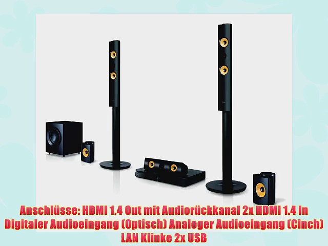 LG BH7440P 3D Blu-ray 5.1 Heimkinosystem (1200 Watt Ultra HD Upscaling WLAN Smart TV Bluetooth <br />http://www.amazon.de/gp/product/B00J38YU4C?tag=investorsukses-21 <br />Ausgangsleistung 1200 Watt 4-Wege Equalizer 60Hz 300Hz 2kHz 10kHz <br />Anschl?sse HDMI 14 Out mit Audior?ckkanal 2x HDMI 14 In Digitaler Audioeingang Optisch Analoger Audioeingang Cinch LAN Klinke 2x USB <br />Aramidfaser-Lautsprecher f?r kristallklaren Ton <br />Men? in 33 Sprachen verbauter Steckertyp Euro Typ 10 <br />Lieferumfang Bedienunganleitung auf CD Kurzanleitung DLNA Installations-CD Fernbedienung Batterien f?r Fernbedienung Wurfantenne Lautsprecherkabel