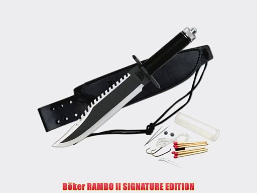 B?ker RAMBO II SIGNATURE EDITION<br />http://www.amazon.de/gp/product/B001V74X0Y?tag=investorsukses-21<br /><br />Gesamtl?nge 385 cm Klingenl?nge 255 cm Gewicht 485 g <br />Klingenmaterial 420 <br />Griffmaterial Nylon
