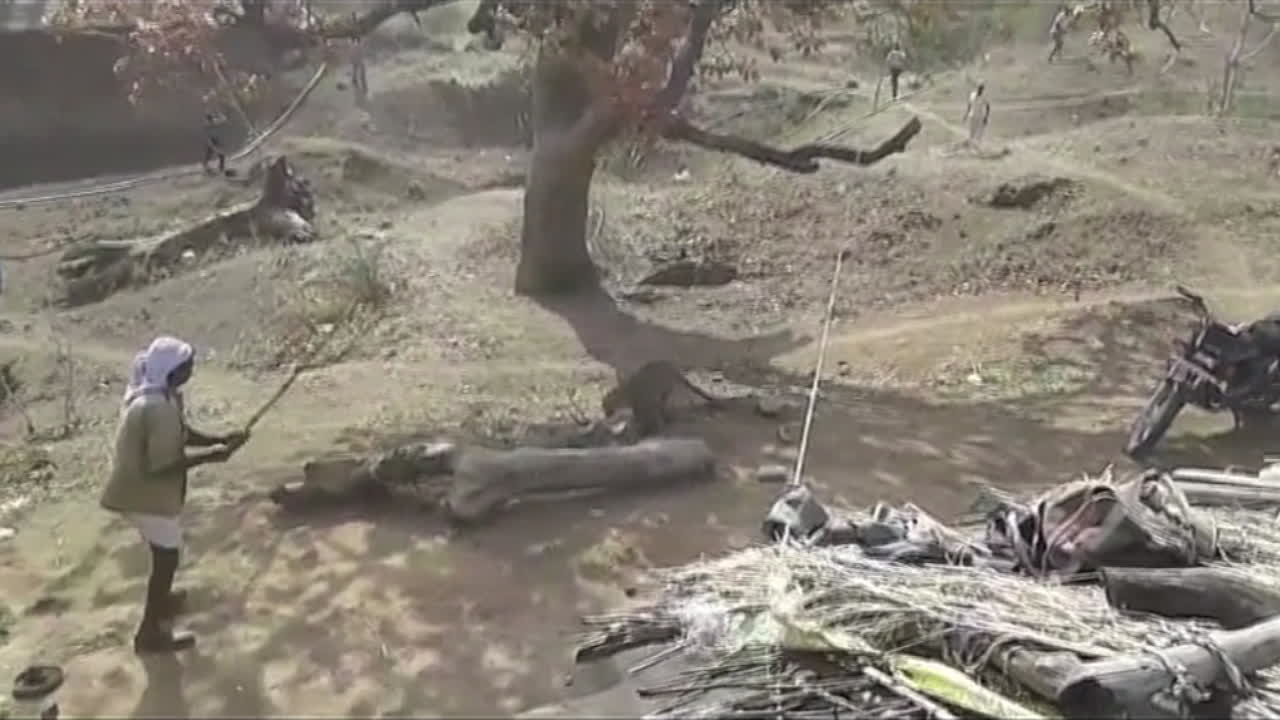 Nur mit einem Stock bewaffnet hat ein mutiger Mann in Zentralindien einen Leoparden bekämpft. Anwohner haben die unglaubliche Szene gefilmt. Das wilde Tier war in ein Dorf gelaufen, um nach Futter zu suchen, löste jedoch Panik aus.
