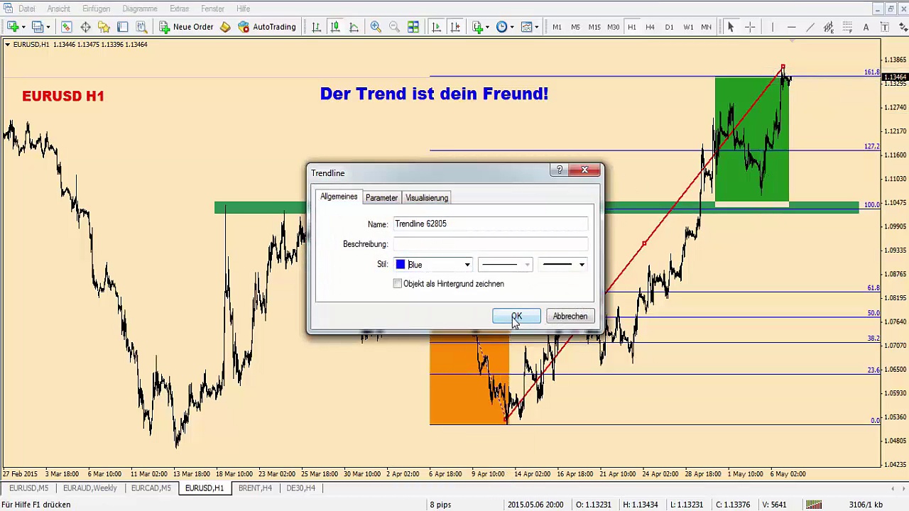 Der Trend ist dein Freund mit Fibo Ausdehnung.