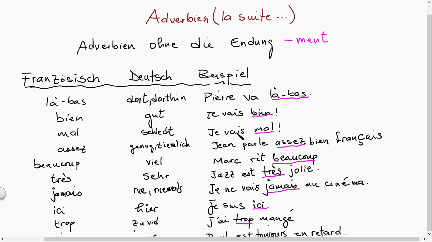 Adverbien mit '-ment'.  2ème Partie