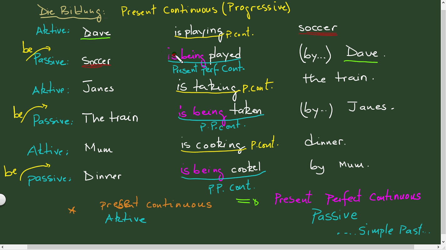 Active Passive Sätze Part 2. Simple Present Progressive zu Present Perfect Progressive