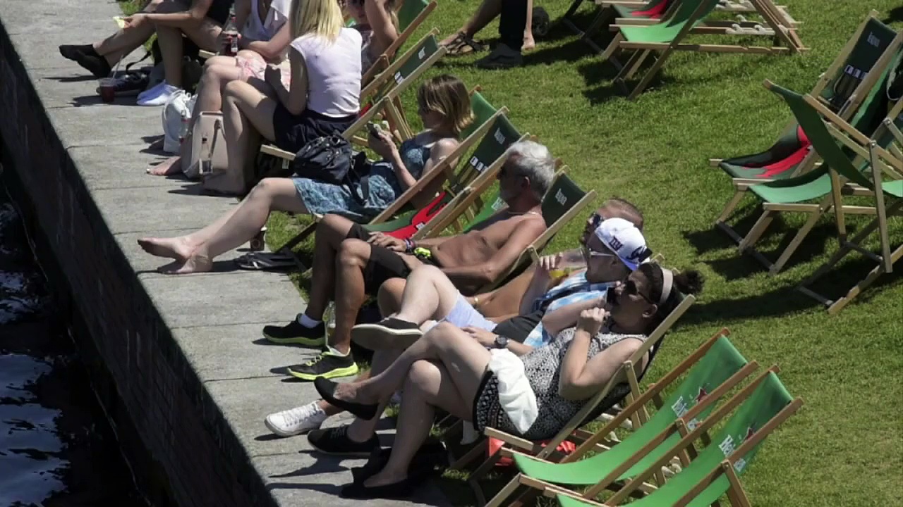 Hoch "Annelie" und ihre Sommerhitze sind in Berlin angekommen: Bei Temperaturen über 30 Grad schwitzen Touristen wie Einheimische und belagern Brunnen und Spreeufer.