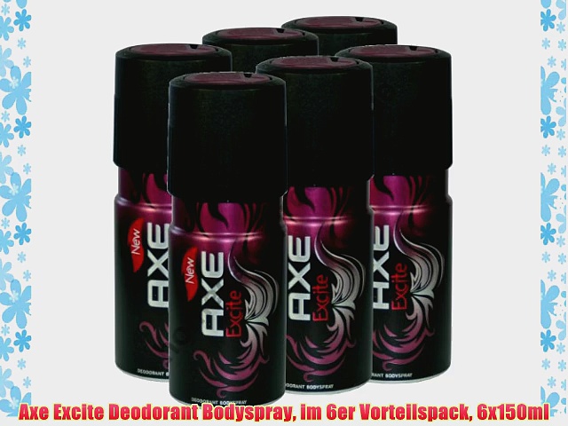 Kaufen bei Amazon.de : http://www.amazon.de/gp/product/B00719D6D6?tag=1001consejo0f-21 <br /> <br />Axe Excite Deodorant Bodyspray im 6er Vorteilspack 6x150ml <br /> <br />Axe Deodorant Bodyspray Excite 150 ml