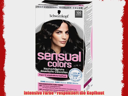 Kaufen auf Amazon.de : http://www.amazon.de/gp/product/B00A6SRKQS?tag=vidaextra0e-21 <br /> <br />Sensual Colors dauerhafte Coloration 100 Schwarz 3er Pack (3 x 1 St?ck) <br /> <br />Intensive Farbe - respektiert die Kopfhaut <br />Mit haarschonender Formel f?r extra K?mmbarkeit und Geschmeidigkeit <br />F?r dunkelblondes bis schwarzes und leicht bis komplett ergrautes Haar geeignet <br />Mit hautberuhigendem Mineral-Komplex <br />OHNE Ammoniak OHNE Alkohol OHNE Silikone