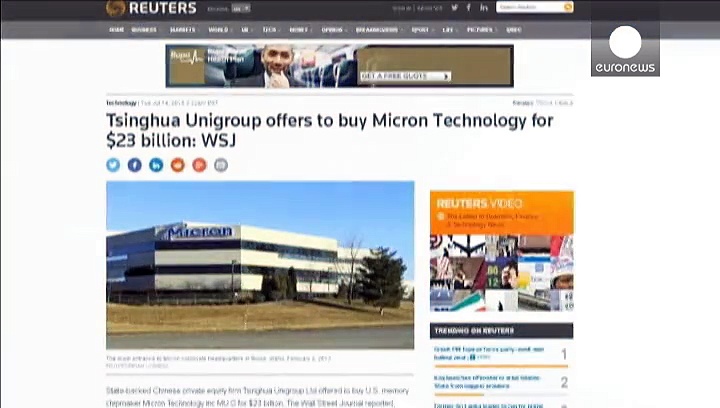 In der Chip-Branche bahnt sich Insidern zufolge (laut “Wall Street Journal”) die bisher größte Übernahme eines US-Konzerns durch ein chinesisches Unternehmen an.<br /><br /> Die von der Regierung in Peking gestützte Tsinghua Unigroup wolle Micron Technology demnach gut 20 Milliarden Euro anbieten. Ein Micron-Sprecher erklärte allerdings, es sei kein Gebot eingegangen. <br /><br /> Micron mit Sitz in Idaho ist in den USA der letzte große Hersteller sogenannter DRAM-Chips, die in PCs laufen. Das Unternehmen produziert auch sogenannte NAND-Halbleiter, die in Mobilgeräten wie Smartphones zum Einsatz kommen. (<br /><br /> In der Welt-Liga der Chip-Hersteller spielt China bisher nicht mit. Es strebt nicht zuletzt aus Furcht vor Cyber-Spionage eine eigenständige Chip-Produktion an. <br /><br /> Tsinghua Unigroup ist aus einer Beteiligungsgesellschaft hervorgegangen und wird von der angesehenen Tsinghua Universität in Peking kontrolliert. Im vergangenen Jahr mauserte es sich durch den Kauf zweier chinesischer Halbleiter-Firmen zum