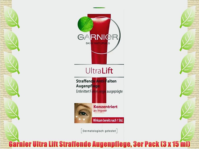 Kaufen auf Amazon.de : http://www.amazon.de/gp/product/B0093HB6UO?tag=vidaextra0e-21 <br /> <br />Garnier Ultra Lift Straffende Augenpflege 3er Pack (3 x 15 ml) <br /> <br />sanfte Methode zur Faltenminderung <br />Anti-Falten-Formel mit hautentspannendem Ingwer und 100 nat?rlicher Kirschessenz <br />sichtbare Wirksamkeit bereits nach 1 Stunde