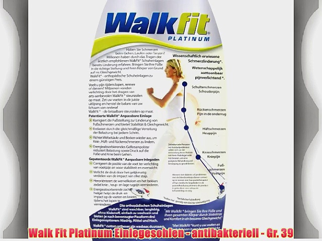 Kaufen auf Amazon.de : http://www.amazon.de/gp/product/B002HFB8OI?tag=vidaextra0e-21 <br /> <br />Walk Fit Platinum Einlegesohlen - antibakteriell - Gr. 39 <br /> <br />Die neuen orthop?dischen Einlegesohlen verbessern Ihr Beingef?hl in jeder Situation <br />F??e Wirbels?ule und Becken bleiben im Einklang <br />Die Nano-Silber-Schicht und die Bel?ftungsl?cher sorgen f?r k?hle und frische F??e <br />Erh?ltlich in den Gr??en 36 bis 46
