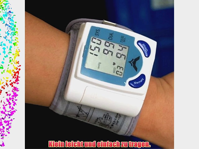 Kaufen auf Amazon.de : http://www.amazon.de/gp/product/B003WVGSY6?tag=vidaextra0e-21 <br /> <br />DIGIFLEX Digitales Handgelenk Blutdruck-/Herzschlag-Messger?t <br /> <br />Klein leicht und einfach zu tragen <br />Einfach zu bedienen einfach zu messen mit Tastendruck <br />Messung von systolischemdiastolischem Blutdruck und des Pulses zur gleichen Zeit <br />Gro?es leicht zu lesendes digitales LCD-Display <br />Hohe Genauigkeit