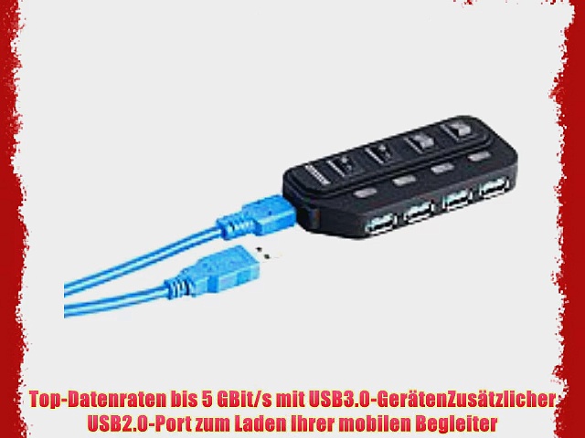 Mehr aus Amazon.de : http://www.amazon.de/gp/product/B0071ZRW6M?tag=mainecoons08-21<br /><br />Xystec Aktiver USB3.0-Hub 4 1 Port einzeln schaltbar schwarz<br /><br />Superschneller aktiver Premium-USB30-Hub mit 4 Super-Speed-Ports <br />Top-Datenraten bis 5 GBits mit USB30-Ger?tenZus?tzlicher USB20-Port zum Laden Ihrer mobilen Begleiter <br />Aktiv bis zu 900 mA an USB30 maximal 2000 mA gesamt <br />Ladestrom am USB20-Port 500 mAEin-Ausschalter und Status-LED an jedem USB-Port <br />Inklusive 230V-Netzteil USB-Kabel deutsche Anleitung