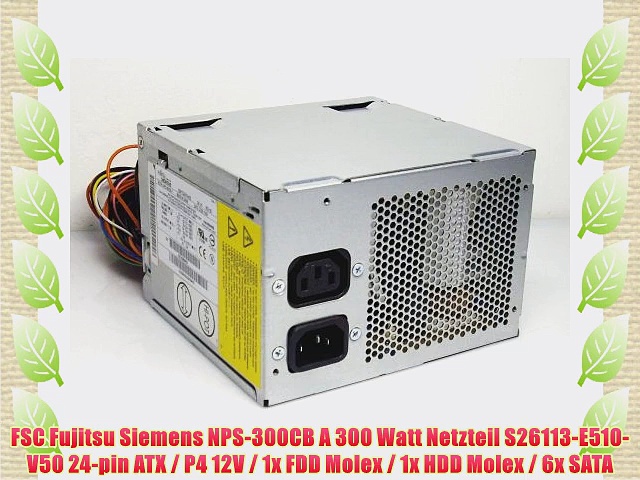 Besuchen Amazon.de : http://www.amazon.de/gp/product/B0092MQCMW?tag=gatosencasa0c-21<br /><br />FSC Fujitsu Siemens NPS-300CB A 300 Watt Netzteil S26113-E510-V50 24-pin ATX / P4 12V / 1x<br /><br />FSC Fujitsu Siemens NPS-300CB A 300 Watt Netzteil <br />Anschl?sse 24-pin ATX P4 12V 1x FDD Molex 1x HDD Molex 6x SATA