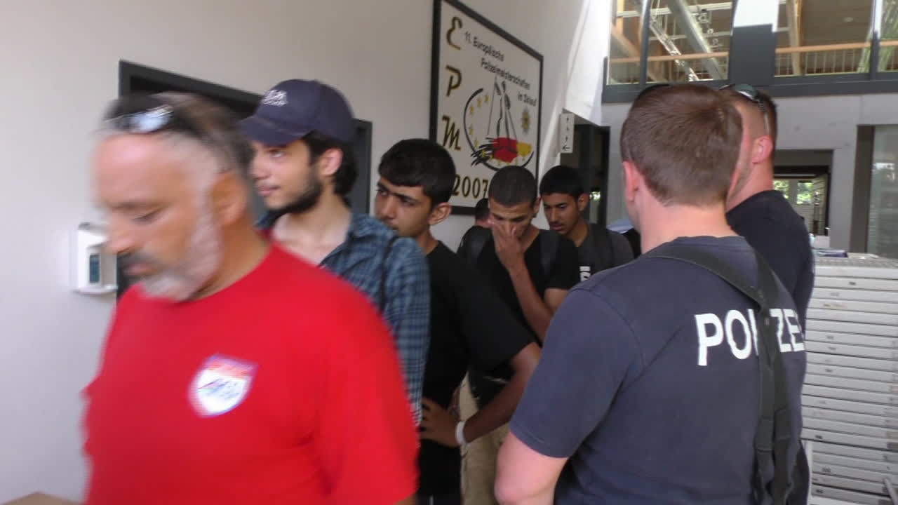 » Bearbeitungsstraße » Flüchtlinge registrieren » Ruptly auf Deutsch » Deggendorf Polizei » Erstregistrierungsstelle » Deggendorf Flüchtlinge » Flüchtlinge Bayern