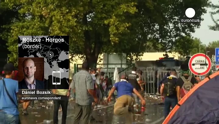 Die ungarische Polizei hat an der serbischen Grenze bei Röszke Tränengas und Wasserwerfer gegen mehrere hundert aufgebrachte Flüchtlinge eingesetzt.<br /><br /> Situation deteriorating on #Serbia border: after water cannon & tear gas, now fires lit, rocks thrown. #refugees pic.twitter.com/8jPLzQDXMl— Jon Williams (@WilliamsJon) 16 Septembre 2015<br /><br /> Euronews-Korrespondent Dániel Bozsik hat den Gewaltausbruch am Grenzkontrollpunkt miterlebt. Er berichtete telefonisch:<br /><br /> “Eine Gruppe von Flüchtlingen durchbrach die Grenze. Dahinter hatte sich eine Polizeilinie formiert und hinter den Polizisten stand ein Wasserwerfer bereit.<br /><br /> 40 bis 50 Flüchtlinge begannen mit Steinen, Stöcken und Plastikflaschen nach den Beamten zu werfen.<br /><br /> Refugee crisis: Hungary deploys teargas at Serbia border – live http://t.co/OP4NVdoyK4 (Dado Ruvic/Reuters) pic.twitter.com/Bvfk9yVEcX— The Guardian (@guardian) 16 Septembre 2015<br /><br /> Die Beamten setzten zunächst ununterbrochen Pfefferspray ein. Danach benutzte die Polizei Trä