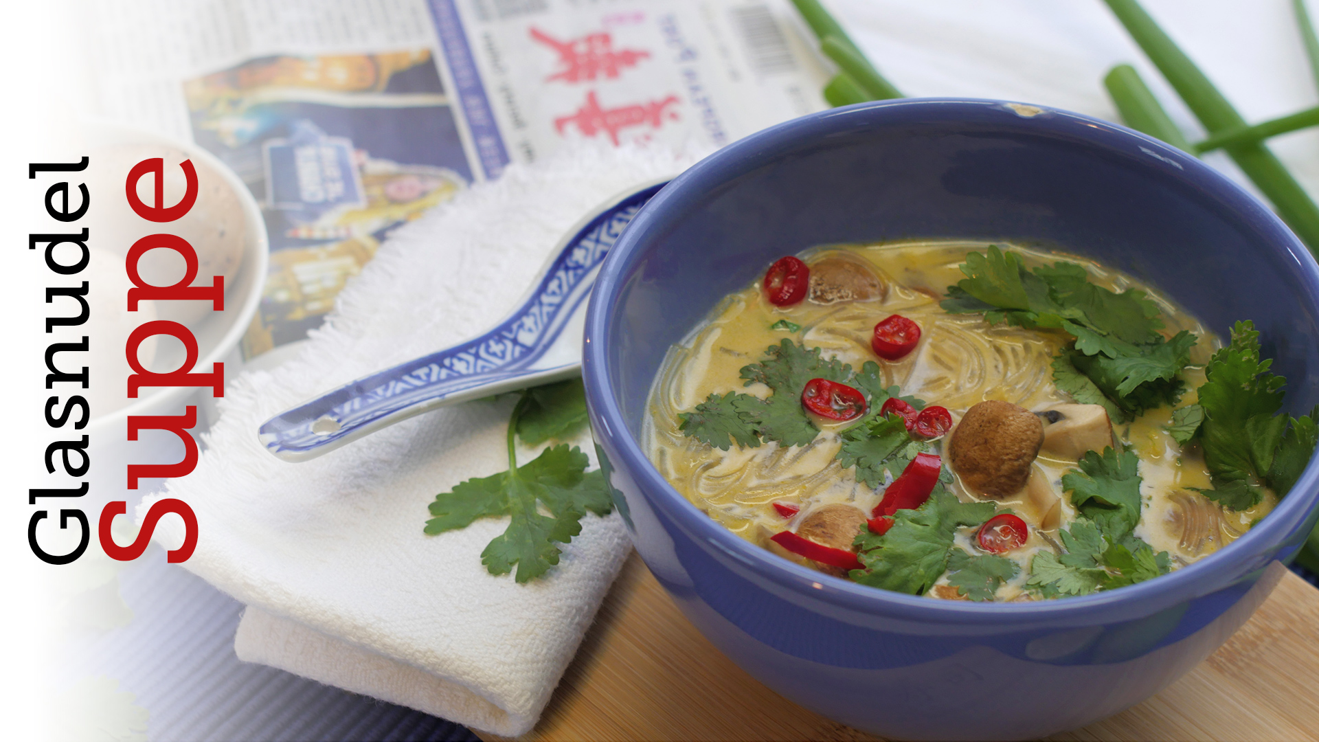 Eine leichte asiatische Suppe mit Champignons und Kokosmilch. <br /> <br />Rezeptlink: http://red-kitchen.com/rezept/glasnudelsuppe/ <br /> <br />Viele weitere Rezepte, Videos, nützliche Tipps & Tricks findest Du auf http://www.red-kitchen.com <br /> <br />Zu finden sind wir außer dem auf <br />Facebook: https://www.facebook.com/redkitchen <br />Google+: http://google.com/+Red-kitchen <br />Twitter: https://twitter.com/rotekueche <br />und Instagram: http://instagram.com/red_kitchen_sonja# <br />Unbedingt vorbeischauen! <br /> <br />* Music courtesy of Audio Network *