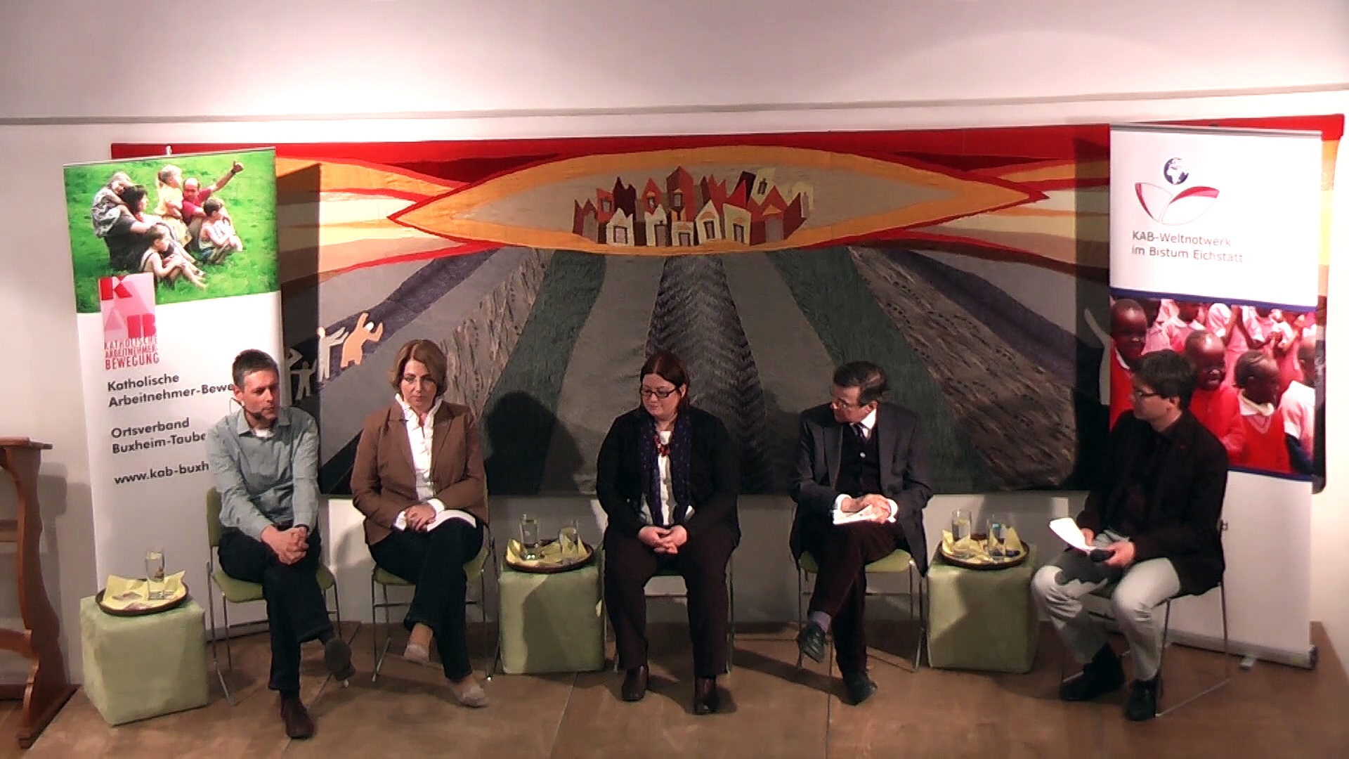 Die aktuelle politische Debatte rund um "Sterbehilfe" thematisierte die Katholische Arbeitnehmerbewegung (KAB) im Rahmen einer prominent besetzten Podiumsdiskussion in Buxheim. Mittwoch, 22. April 2015 sprachen Fachleute aus verschiedenen Bereichen mit den Teilnehmerinnen und Teilnehmern aus ihrer jeweils unterschiedlichen Sichtweise. <br /> <br />Zu Wort kamen Tanja Schorer-Dremel, Professor Stephan Müller, Dr. Michael Ried und Carmen Pickl. Die Moderation führte Bernhard Löhlein von Radio K1. <br /> <br />Tanja Schorer-Dremel ist Abgeordnete der CSU für den Stimmkreis Eichstätt im Bayerischen Landtag, Kreisrätin im Landkreis Eichstätt und stellvertretende Landrätin, außerdem Mitglied im Eichstätter Stadtrat. Die ausgebildete Grundschullehrerin war zuvor Rektorin an der Grundschule Walting. <br /> <br />Professor Dr. Stephan Müller ist seit 1999 Inhaber des Lehrstuhls für Moraltheologie an der Katholischen Universität Eichstätt-Ingolstadt. Seine Forschungsschwerpunkte liegen unter anderem in aktuellen Fragen der Bioethik und der Suizidforschung. <br /> <br />Dr. Michael Ried ist Oberarzt an der Palliativstation im Klinikum Ingolstadt und praktiziert als Facharzt für Anästhesiologie. Ziel einer Palliativstation ist es, Menschen mit einer fortgeschrittenen unheilbaren Krankheit Linderung der Symptome zu verschaffen, so dass die verbleibende Lebenszeit mit einer möglichst hohen Lebensqualität verbracht werden kann. <br /> <br />Carmen Pickl koordiniert den Hospiz- und Palliativdienst des Malteserordens im Bistum Eichstätt. Etwa 2.000 ehrenamtliche Helferinnen und Helfer begleiten in 80 ambulanten Diensten und sieben Kinderhospizdiensten Kranke und deren Angehörige.