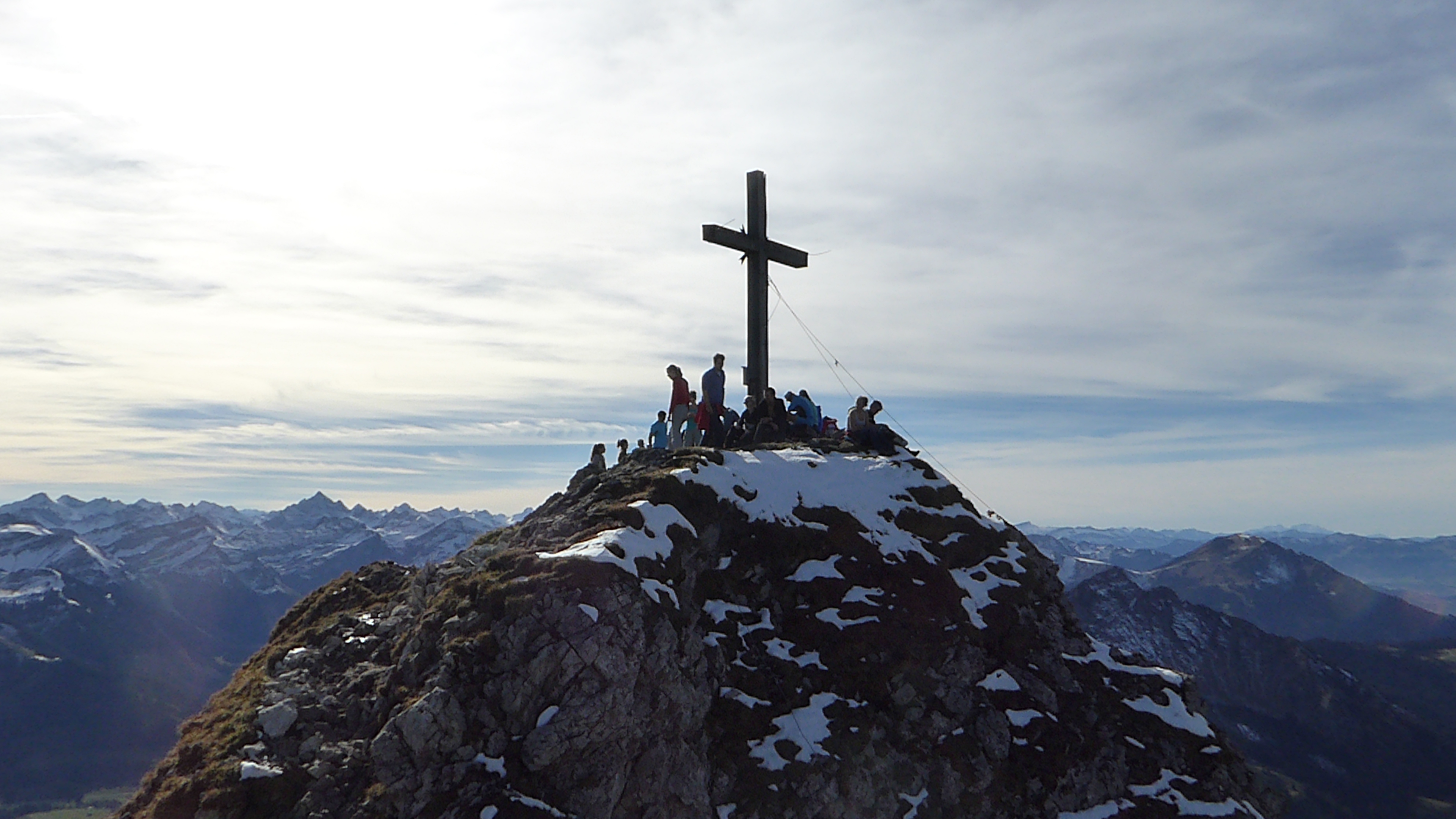 Schon am Parkplatz Lumberg fielen uns die vielen Autos auf und in der Folge des Tages auch die Menschen die den Aggenstein "stürmten". Der Aggenstein ist einer der beliebtesten Aussichtsberge im Allgäu! <br /> <br /> <br /> <br />Wir machten uns auf zur Bad Kissinger Hütte (1.788m). Erst geht es durch den Wald - später genießen wir die Sonnenstrahlen beim Aufstieg über die Südseite. Oben an der Hütte angekommen werden wir mit einem herrlichen Blick auf das Tannheimer Tal, die Füssener Seen und den Gipfel belohnt. <br /> <br /> <br /> <br />Das gute Wetter lockt natürlich viele Gipfelstürmer an. Am felsigen und gesicherten Gipfelaufbau reihten wir uns dann in die Schlange der Berghungrigen ein. An den Sicherungsketten empor hangelnd erreichten wir dann wenig später den Gipfel. Oben wird man mit einem herrlichen Blick ins Alpenvorland und auf die Tannheimer Berge belohnt. Diese sind bereits Schneebedeckt, was die Aussicht zusätzlich bezaubert. Beim Abstieg dann die verdiente Rast auf der Bad Kissinger Hütte.