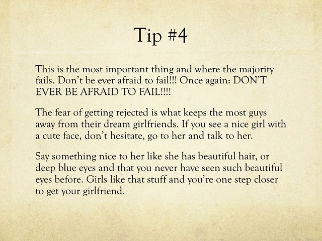 For more tips on how to get a girlfriend check this site out: http://www.howgeeksgetgirls.com/attract-a-girl/