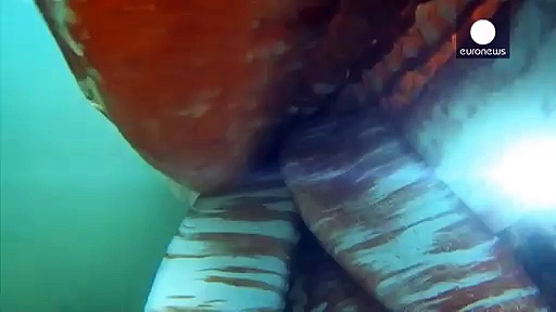 Ein Riesenkalmar hat sich in eine japanische Hafenbucht nördwestlich von Tokio verirrt. Mehrere Taucher filmten das etwa vier Meter lange, lichtscheue Tier, bevor sie es ins offene Meer hinaus geleiteten. Sie halten den Tintenfisch für ein sehr junges Exemplar. Ausgewachsene Riesenkalmare werden bis zu 12 Meter lang.