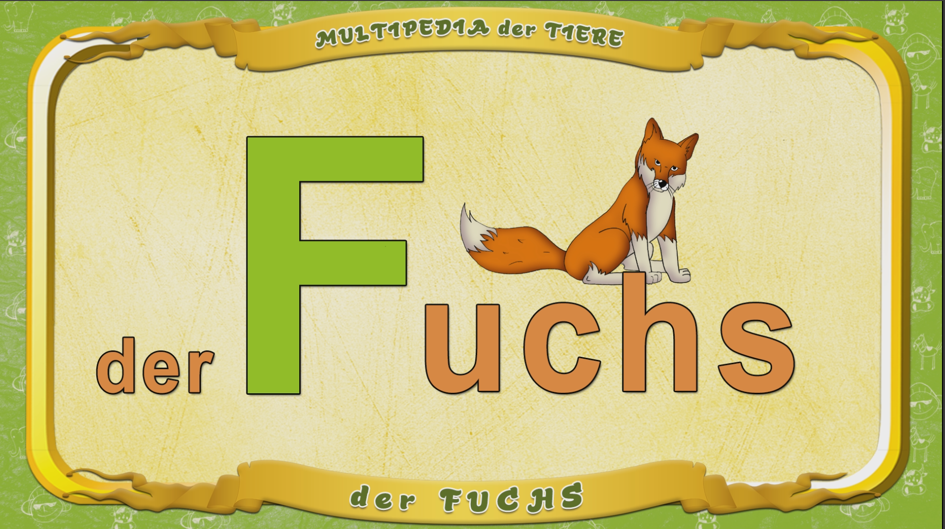 Buchstaben und Wörter lernen zusammen mit Tante Eules Multipedia. Kennenlernen des Buchstaben F und des Wortes Fuchs. Animiertes Tieralphabet in Deutsch.