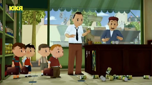 Nick geht mit seinem Vater das Abendessen einkaufen, weil seine Mutter heute keine Zeit dafür hat. Und da Hühnerbrüh den Jungs in der Pause mal wieder den Ball konfisziert hat, hofft Nick, dass sein Vater ihm einen neuen kauft und nimmt zur Unterstützung Roland, Franz und Otto mit. Eigentlich sollte Nicks Vater einen Braten und Gemüse und für Nick eine neue Schultasche kaufen, aber letztendlich kommt er mit zermatschten Tomaten, zerbrochenen Eiern, einem neuen Fußball und zwei Strafzetteln nach Hause! Er sieht ein, dass er fürs Einkaufen doch nicht so geeignet ist und lädt die Familie zum Abendessen ins Restaurant ein