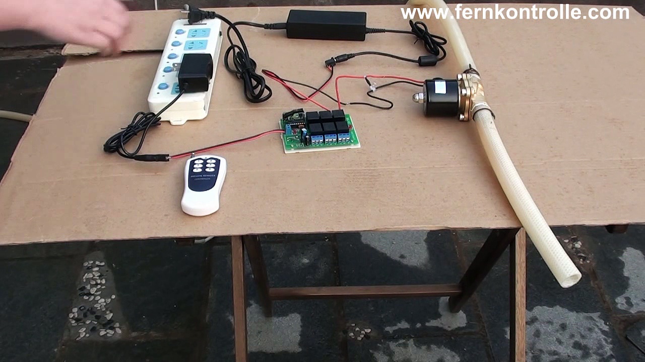 Produkte Link: http://www.fernkontrolle.com/elektrisches-magnetventil-c-521.html <br /> <br />Für DC- und AC Magnetventil-Version werden wir Ihnen verschiedene Funkfernbedienung bieten. Für DC Magnetventil bieten wir Ihnen die set Funkfernbedienung <br /> <br />Drahtlose Steuerung, einfach zu installieren. <br />Kontrollieren Lichten, Motoren, Lüfter, elektronische Betriebstüren / Schlossen / Fenster / Rollladen / Autos oder andere Geräte mit Spannung AC100~240V. <br />Sie können den Empfänger mit Sender (Fernbedienung Kontrolle) von jedem Ort innerhalb einer zuverlässigen Entfernung ein / aus schalten. Die Funksignale können durch Wände, Böden und Türen laufen. <br />Geschutzt vor Gegenstrom und übermäßigem Strom. <br />Hörbares und visuelles Signal <br />Arbeiten mit Mikrokontroller Typ EM78P156, einem 8-bit Mikroprozessor, der entworfen und entwickelt mit stromsparender und Hochgeschwindigkeits-CMOS Technologie wird. <br />Zuverlässige Kontrolle: Sender (Kodierung) und Empfänger (Dekodierung) benutzen eine 8-Bit Kode <br />Ein / einige Sender können ein / einige Empfänger gleichzeitig kontrollieren. <br />Wenn Sie zwei oder mehr Empfänger an dem gleichen Ort benutzen, können Sie die mit verschieder Kodes einstellen. <br />Sendefrequenz: 315MHz (Noch mit 433MHz bei uns, wenn Sie die brauchen, bitte sagen Sie uns.) <br />Funkfernbedienung Teschnischdaten: