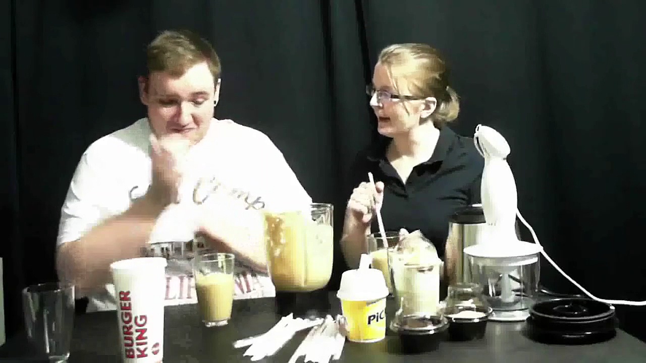 Heute testen Bea und Dennis, was man mit so Fastfood anstellen kann! <br /> <br />Man nehme: <br />2 Mixer <br />1 Bacon Cheese Burger <br />20? oder auch mehr Fritten <br />9 Zwiebel Ringe sowie <br />0,5 l Fanta <br /> <br />Für das Dessert benötigt man folgendes: <br />1x Hot Blondie <br />1xHot Brownie beide ohne Sahne/Eis <br />1xEis <br />1xEiskaffee <br /> <br />Was dabei rauskommt, wollt ihr wissen?!?!? <br /> <br />Schaut doch einfach selbst!?!?! <br /> <br />Die Audio Quality ja.... wir wissen es ;) sagt nichts *lach* <br /> <br />daran wird bis zum nächsten Video gearbeitet ^^ <br /> <br />& ja wer Pixels findet, darf diese behalten auch daran wird gearbeitet ^^
