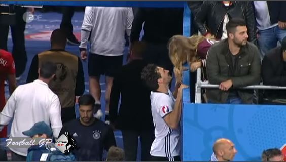 Mats Hummels Kissing his wife after draw match of Germany vs Poland Euro 2016