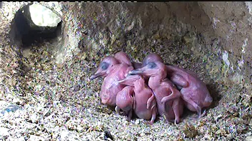 Kueken schluepfen bei 2.52 Stunden.. Live aus der Eisvogel Bruthoehle (105)