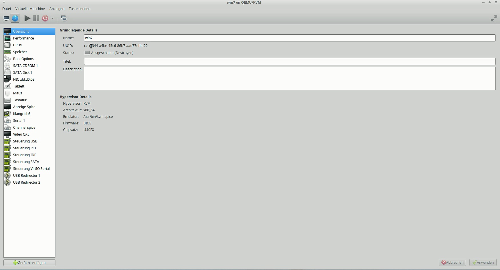 » QEMU » Xubuntu » Windows 7 » KVM » Virtmanager » Virtualisierung